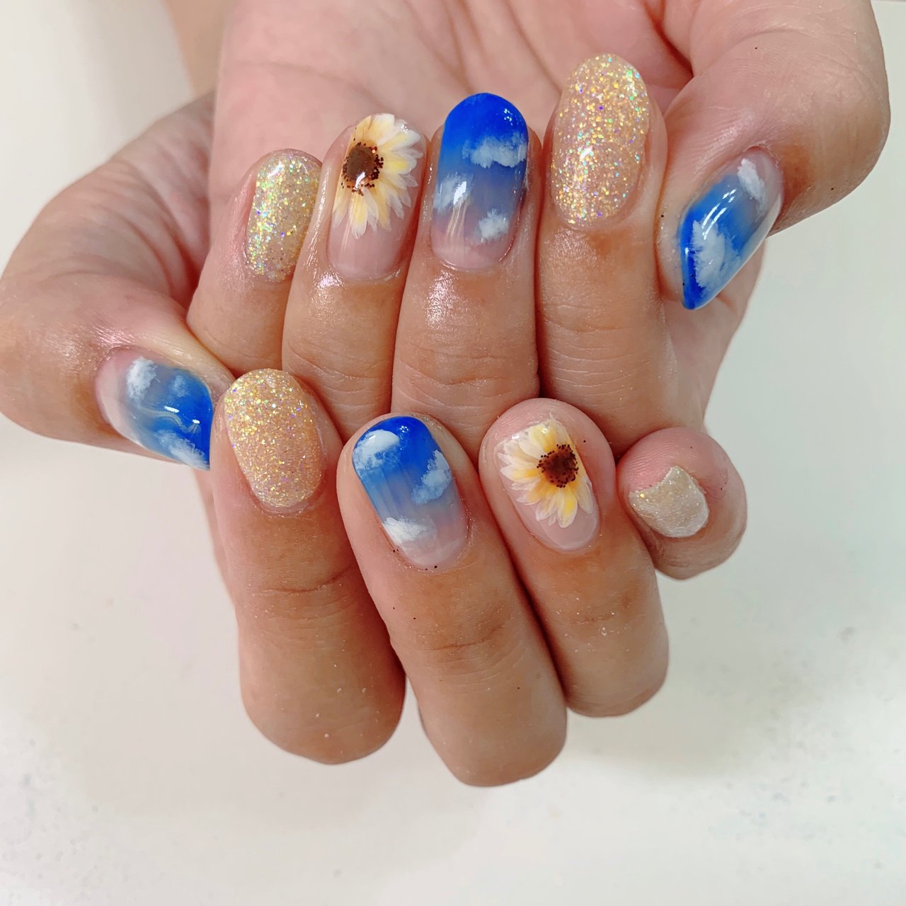 夏 ハンド グラデーション フラワー ショート Kana Createnail K のネイルデザイン No ネイルブック
